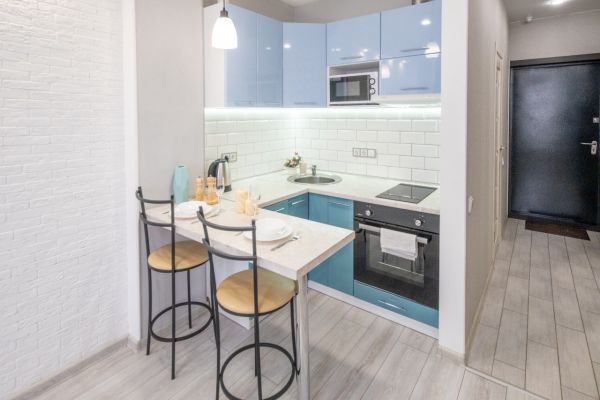 - Для комфорта - фен, утюг, гладильная доска, плита, микроволновка, холодильник, чайник, все для приготовления пищи.